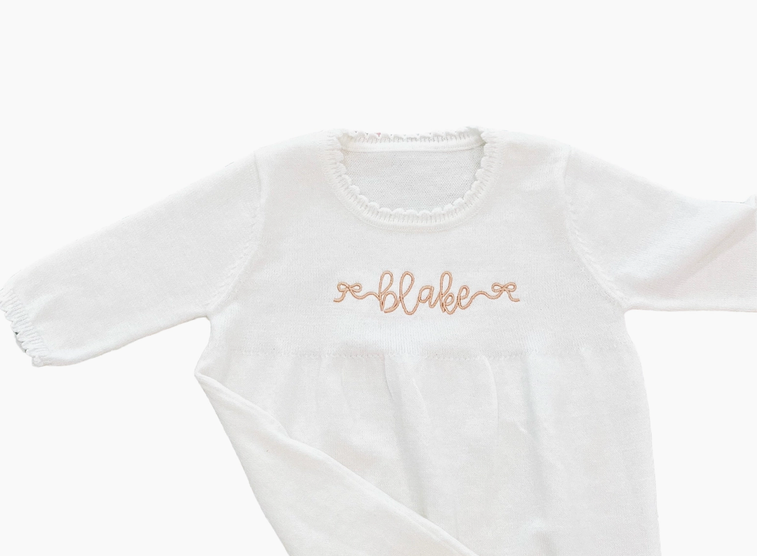 This 100% cotton knit gown would be the perfect baby shower gift. Comes with the sweetest scalloped edge for a classic look!